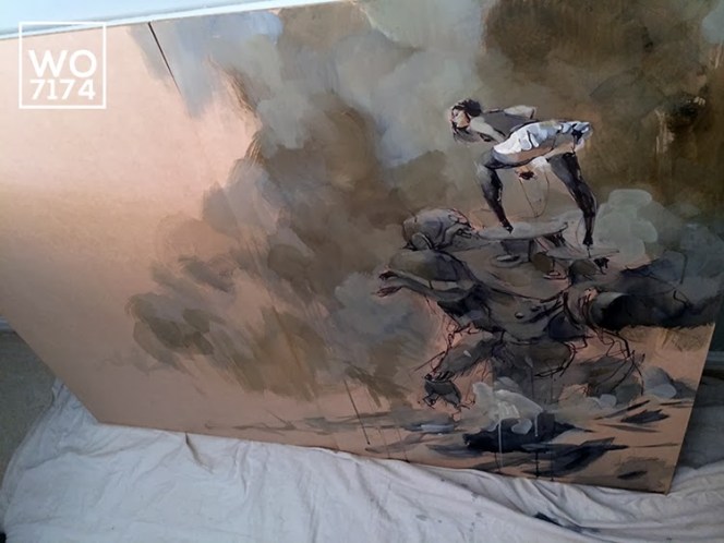 Drawing has many forms being it a tight realistic drawing , or a simple doodle, all drawings are different and reflect a lot of what we are as both artists and as people. The balance of roughness and neatness is what differentiates each artist and their style,questions such as ” How much should I take from a reference?”,”How expressive should I be?” and ” how much neatness should I put on a drawing to make it acceptable, and where should I apply it?” are what spawn the differences between personal styles, and differentiate how each artist both approach and expect from their work.This leads me to what really inspires me in Ashley Woods drawings being their roughness and stylistic choices. His choices with the exploration of space interest me,almost as much as his choices in style ,given that he worked with comics most of his career , find his usage and rendering of space in his paintings to be the most interesting and relevant aspect of his style,at least for the purposes of this blog entry. What is interesting about his usage of space is how abstract yet thematically specific it is.His usage of color to convey space is fantastic, and the many shades used and the interaction of each color makes the feel of each space both unique and unquestionably Ashley s own in style and feel.