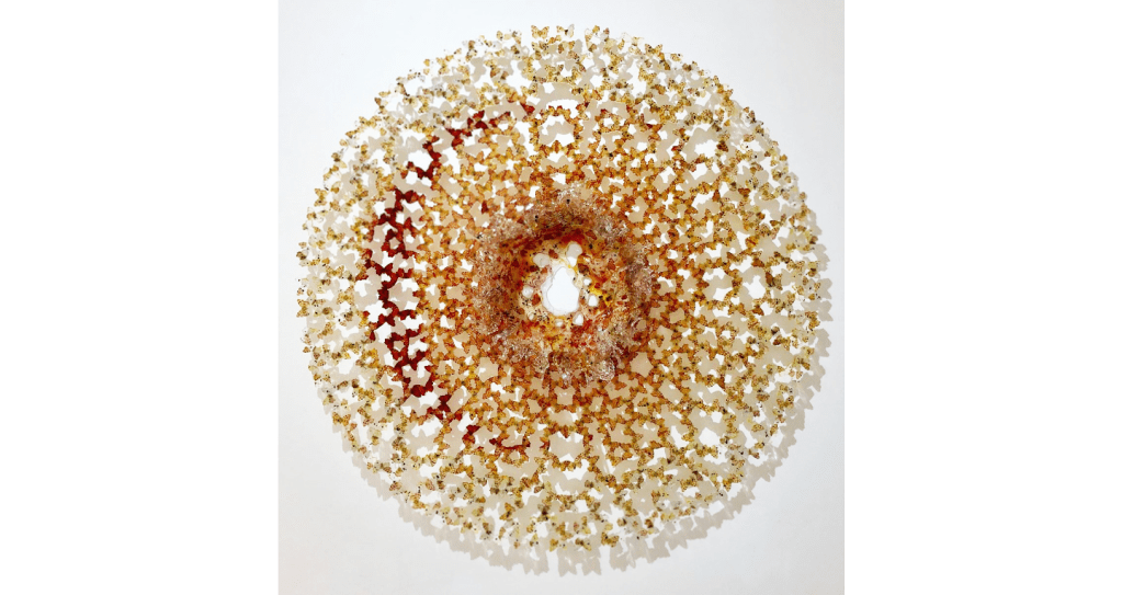 Boeretto is an Italian artist born in 1976, currently working in Venice. Using a range of materials from glass wool, bark, resin, and sand, she creates different sculptural pieces that bring a sense of wonder. Her work stood out to me due to the strong incorporation of butterflies, which I think can bring almost anyone joy. She has many pieces that are dreamcatchers she has created with butterflies and different materials. Seeing the swirl of beautiful wings and different colors is truly fascinating, I love the uniformity of it all coming together. The way she incorporates the same materials into the tree sculptures brings all of her work into the same light. In an interview she states that, “I believe in language that creates new forms through a strong symbiosis between technique and content. I believe in the work that obscures a standardizing light. I always start with the need to translate content or visions into form. This need leads to the search to find the right strategies, the ways to give voice to the image to be created.”