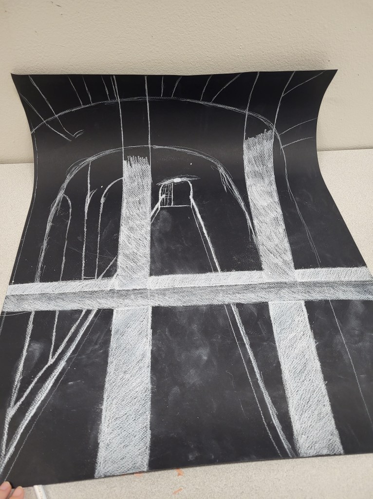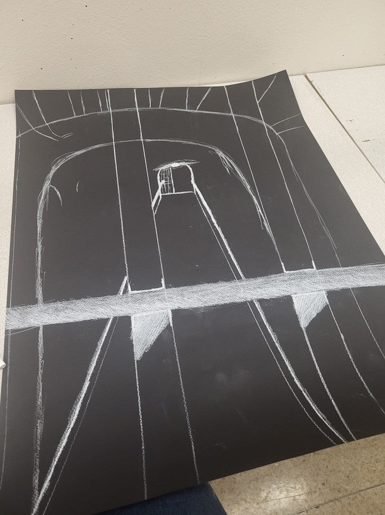 However, I did run into some trouble with the colored pencil getting all over the black paper, but that was luckily just an easy fix. After the next few days of coloring in parts white, shading other parts, and erasing mistakes I finished my drawing.