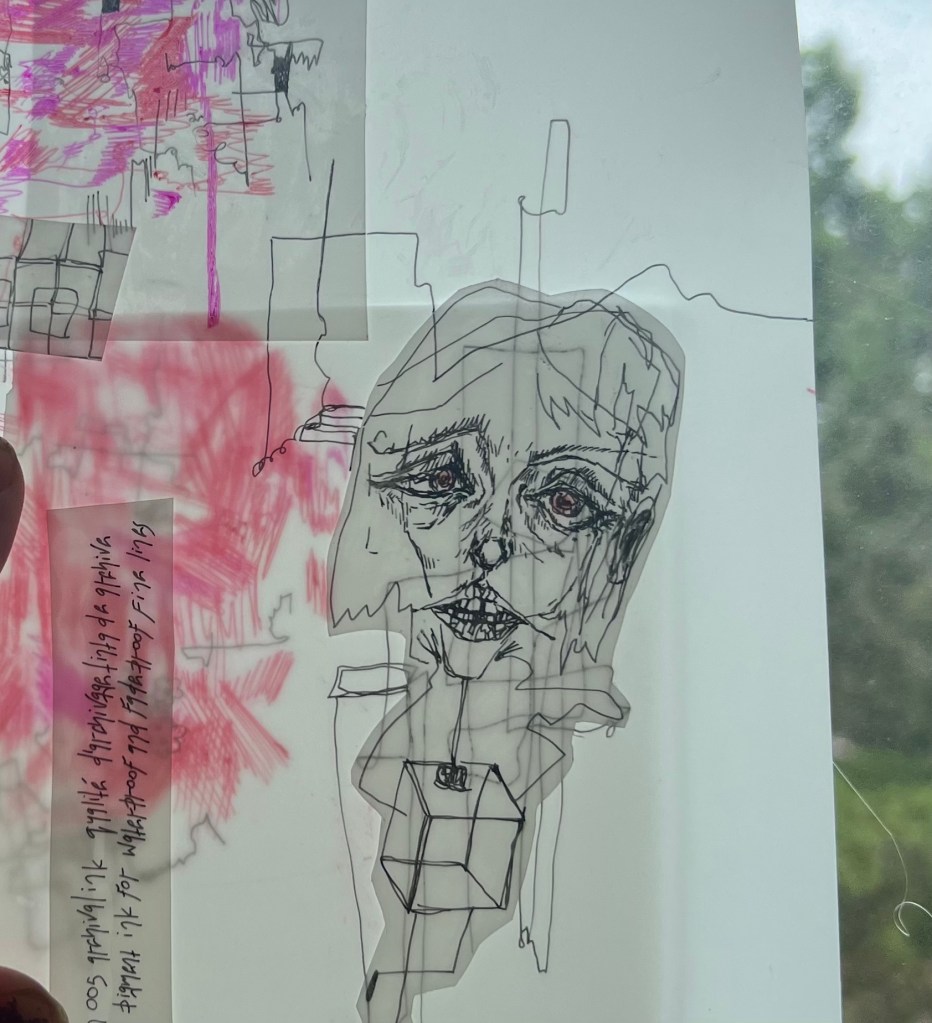 My translucent layers project was kind of just a collage with translucent paper. I wish I had spent more time on this and had gone in with a better plan. The paper we used wasn’t as translucent as something like tracing paper and I really wish I had done that instead. I like my little doodle and the colors are nice, but I don’t know what else to say about it. I do definitely hope to make more work using this method in the future because I really like the effect it gives when done correctly. I think to successfully make an image with it you really need to work from a reference.