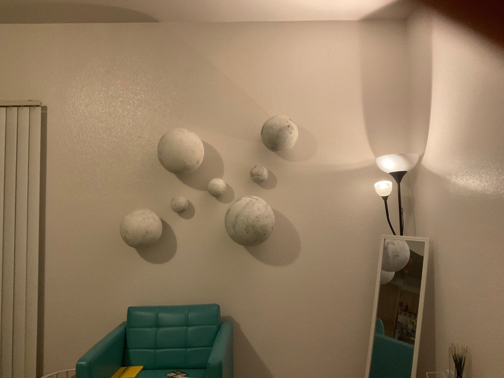 For my individual art project I chose to use paper-mache techniques to create a series of different sized balls and explore the usage of texture on viewers experience as well as the artists, myself, as well.