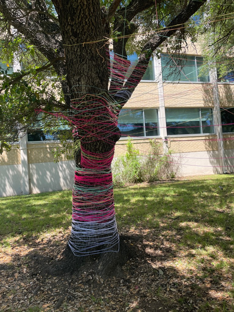 If I were to improve something about this project it would have been my approach to the cyanotypes a little differently. I would have purchased plexiglass so that I could have had my negative been compressed down on the fabric better I think then the lines would have come through stronger. Though with that said overall I really enjoyed working on this piece and am happy with how it came out. I explored drawing into space with this project with my use of lines, and more specifically using the yarn to have the lines come off of the panels into the space.
