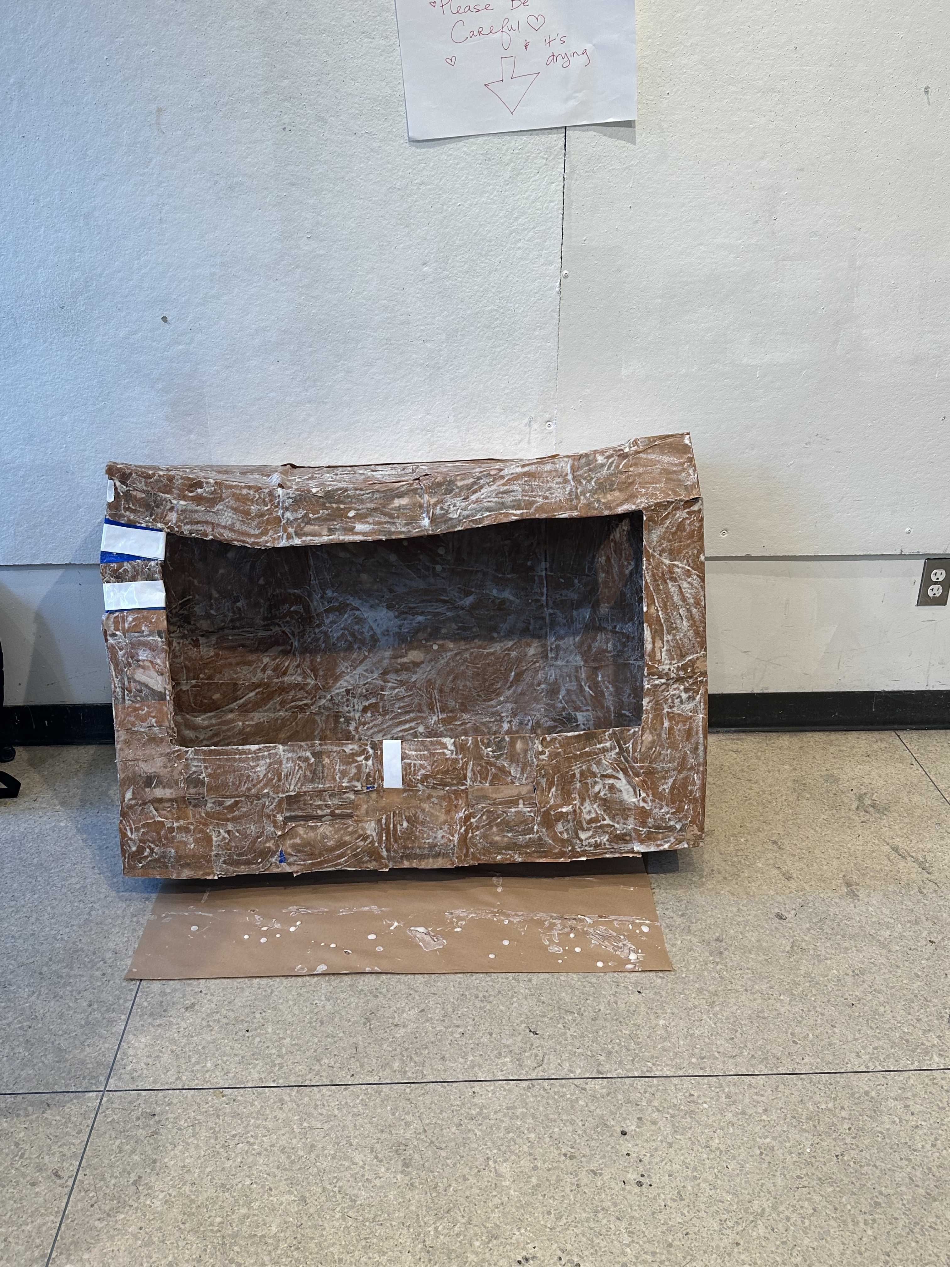 In this project I was really working through a process rather than looking for a particular outcome. I worked with recycled materials: cardboard, newspaper, and fruit packaging. I started by creating the base of my project using paper-mache.