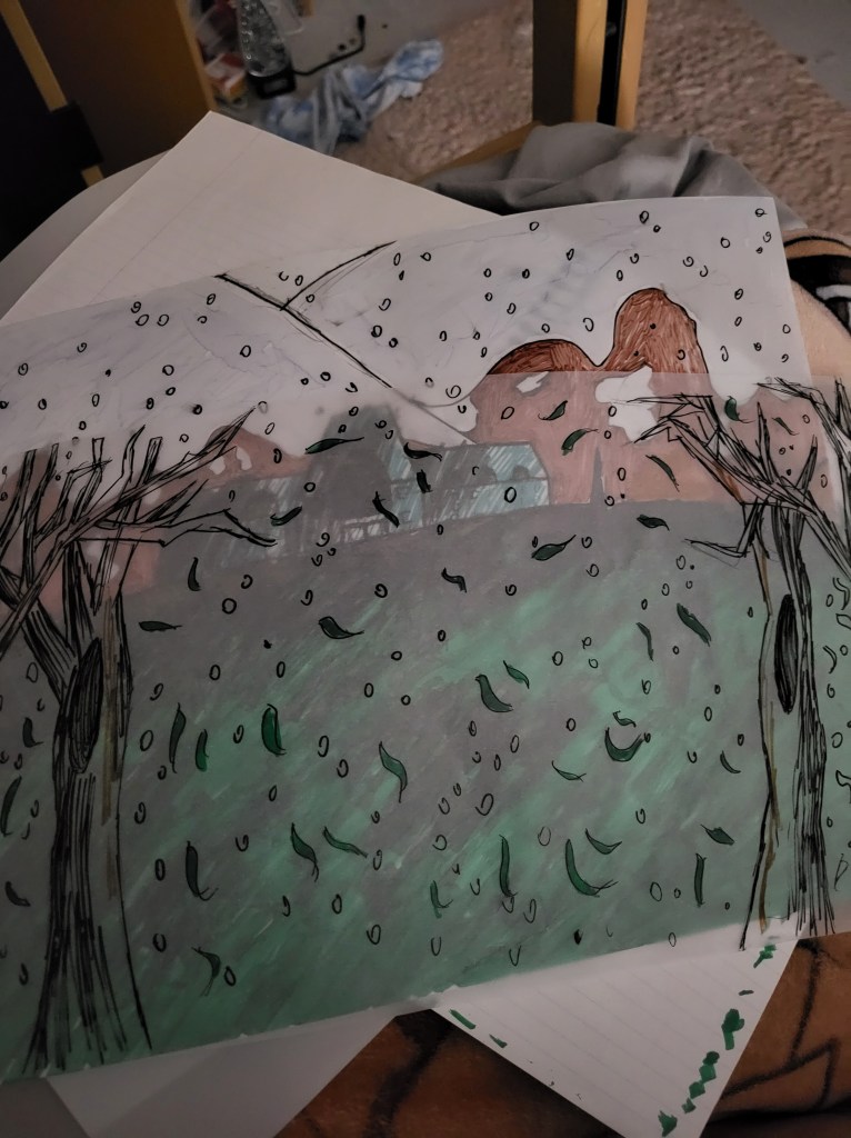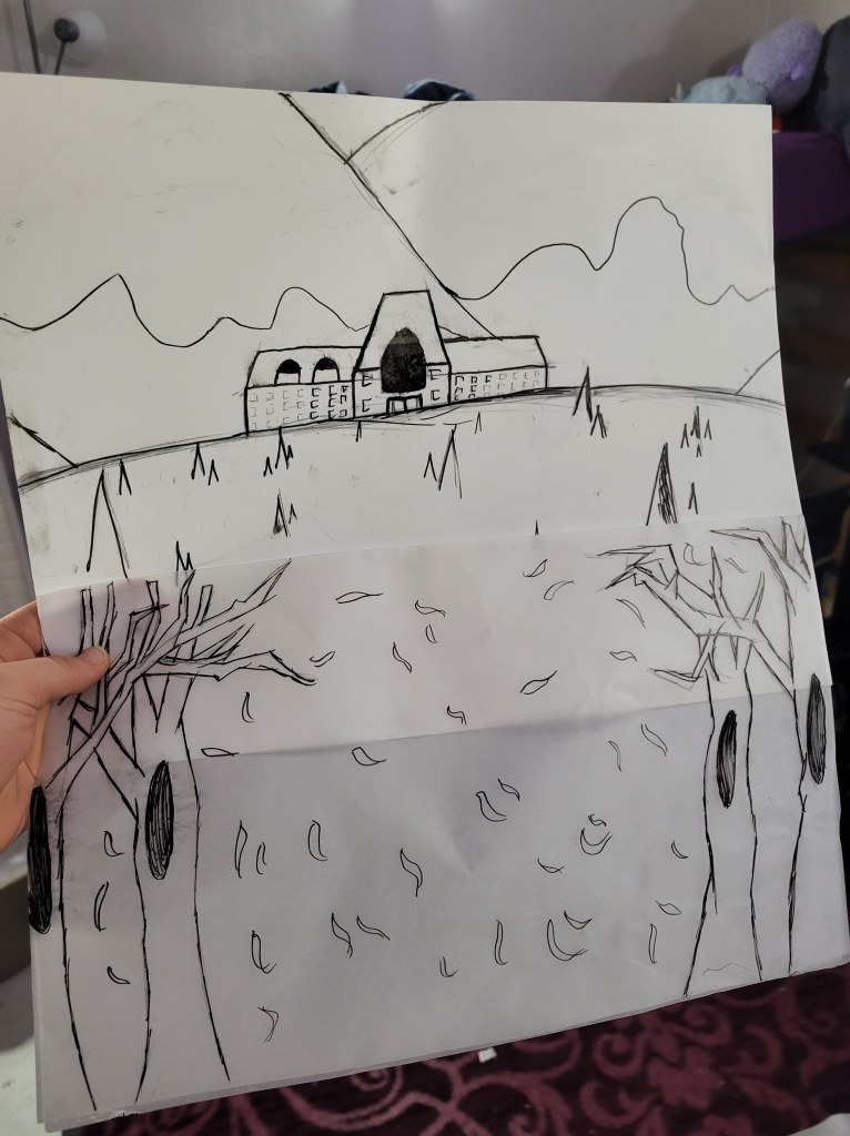 This one for me was kind of hard, so I honestly don’t like how it looks. I tried to make a snowy artwork of the overlook hotel from the shining. It was the first thing that came to mind, so I decided to try it out. As for the materials I used, it was mainly alcohol markers and ink pens for this project.
