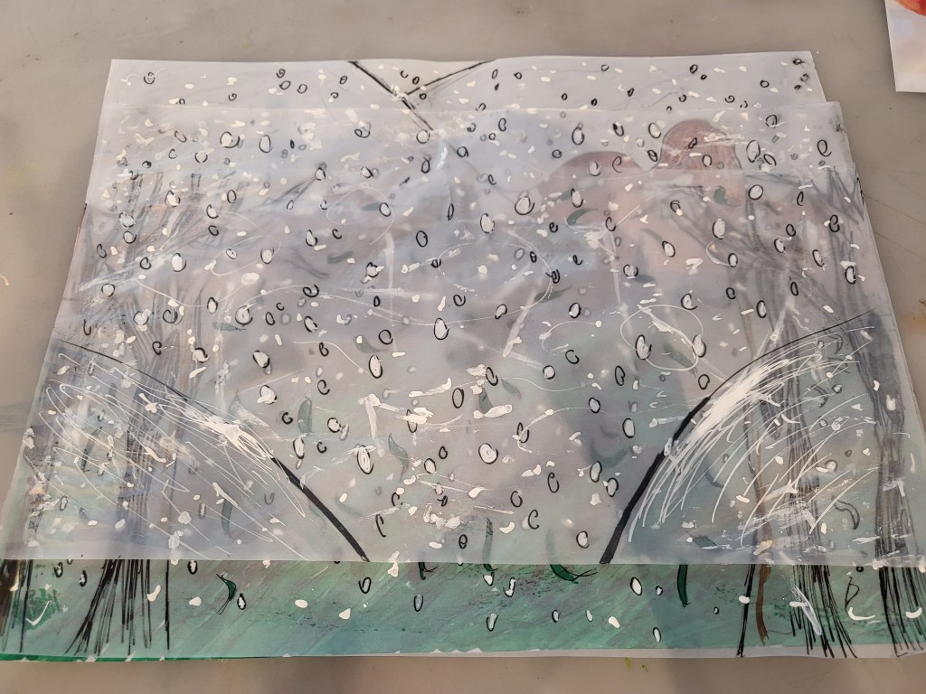 I sadly didn’t have any white markers or pens, so I had to use light blue markers for the snow. However, in class, I was able to use one from someone to make the snow look better. The end result is much better than how it started, but I wish I had some other kind of paper to make the hotel and ground look better.